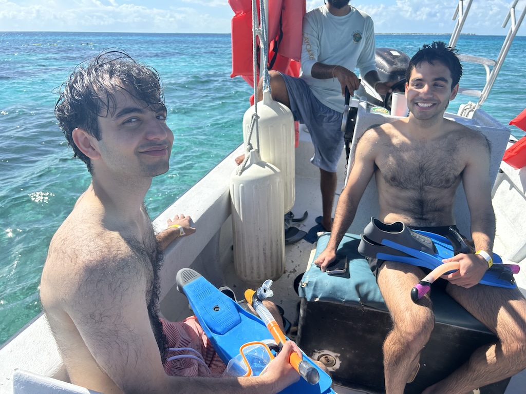 Kiran helped plan a seven-stop snorkeling tour out of Caye Caulker (pronounced key caulker). Our first full day would begin with a morning ferry ride and a deep dive into the Belize Barrier Reef.